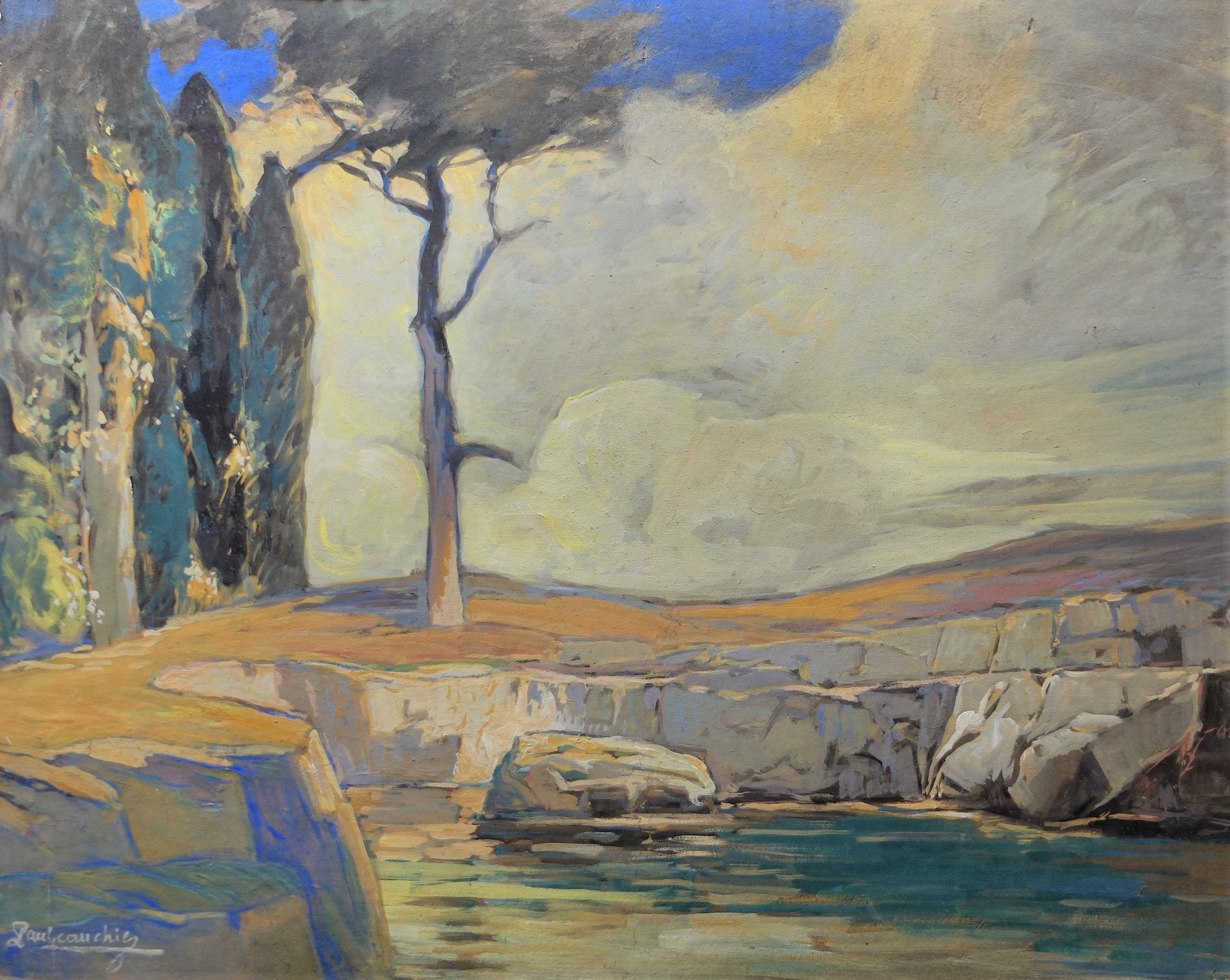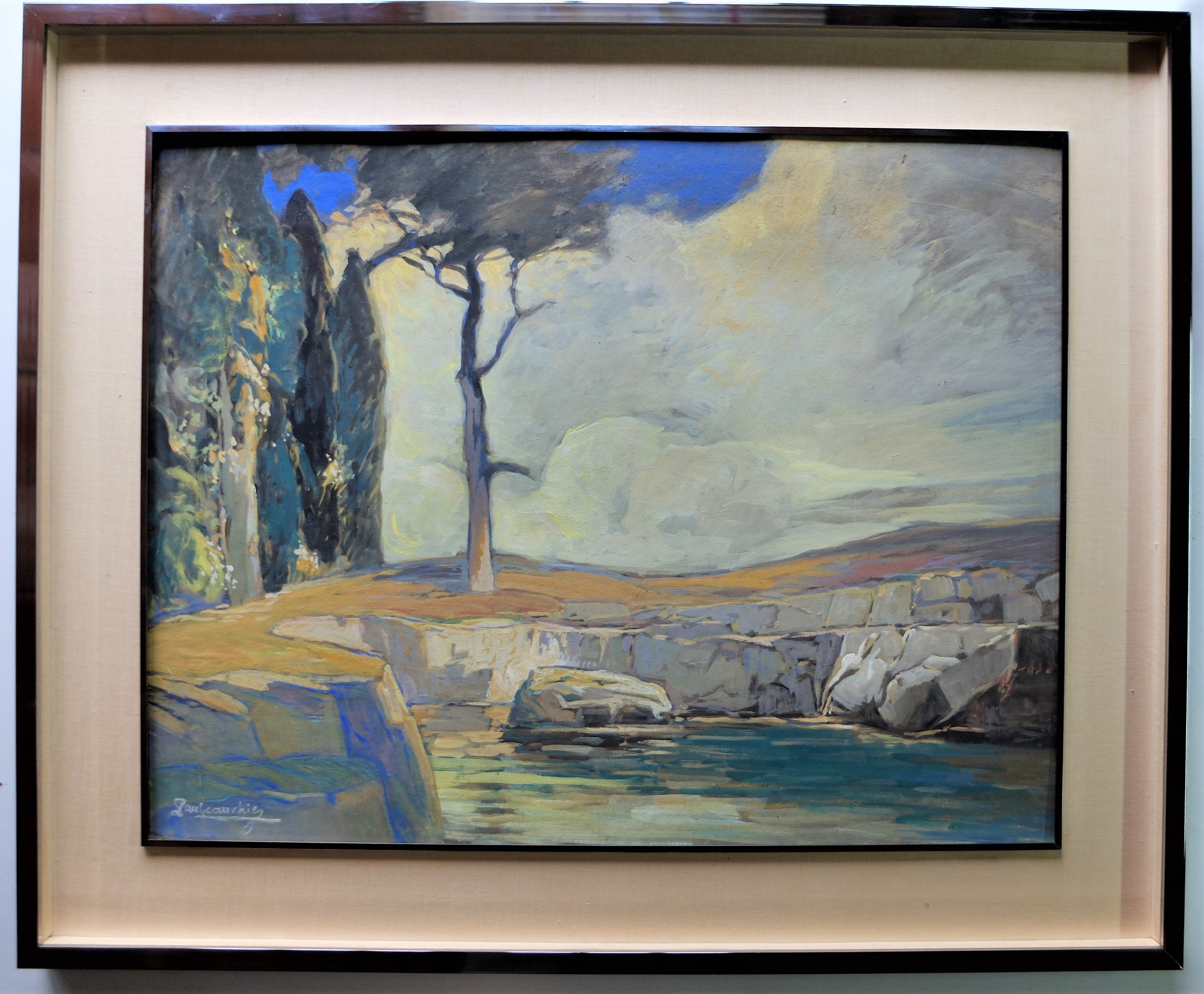 Grande gouache postimpressionniste du début du 20ème siècle.