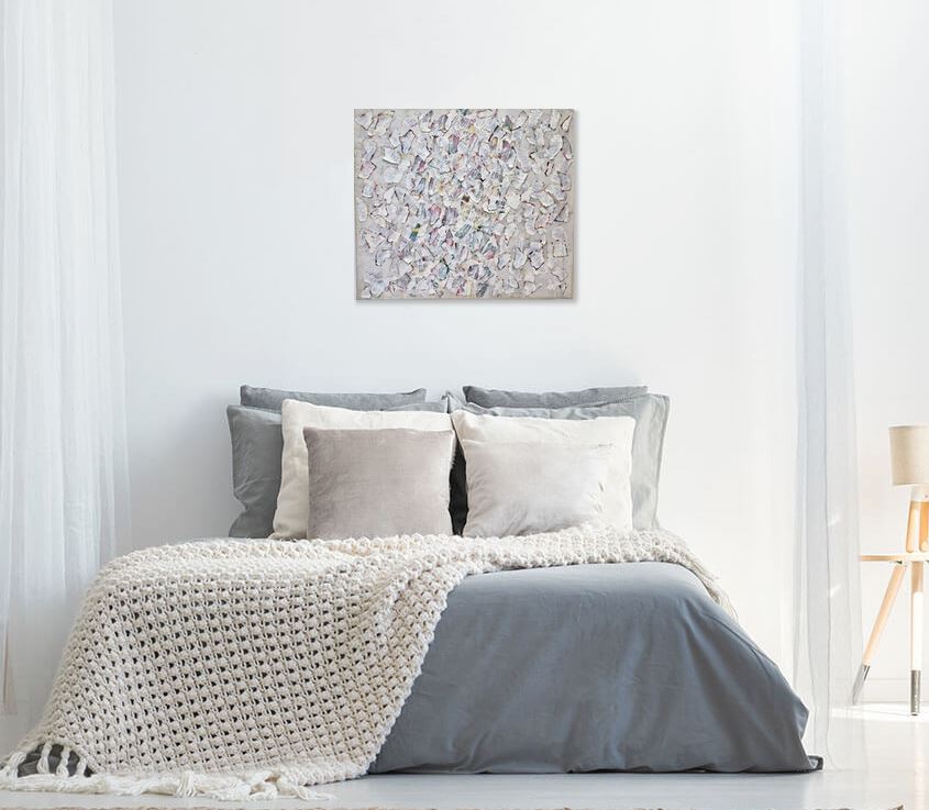 Shigéo Shinjo (1945-2014) artiste japonais. Collage sur toile de papiers publicitaires superposés, et peints. Signé et datéau dos. Format 58,5 x 51 x 6cm