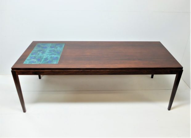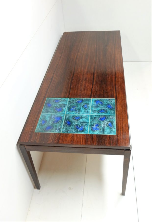 Désignation: table basse Origine: scandinave Époque: 1960 Matière: palissandre et céramique État: très bon état