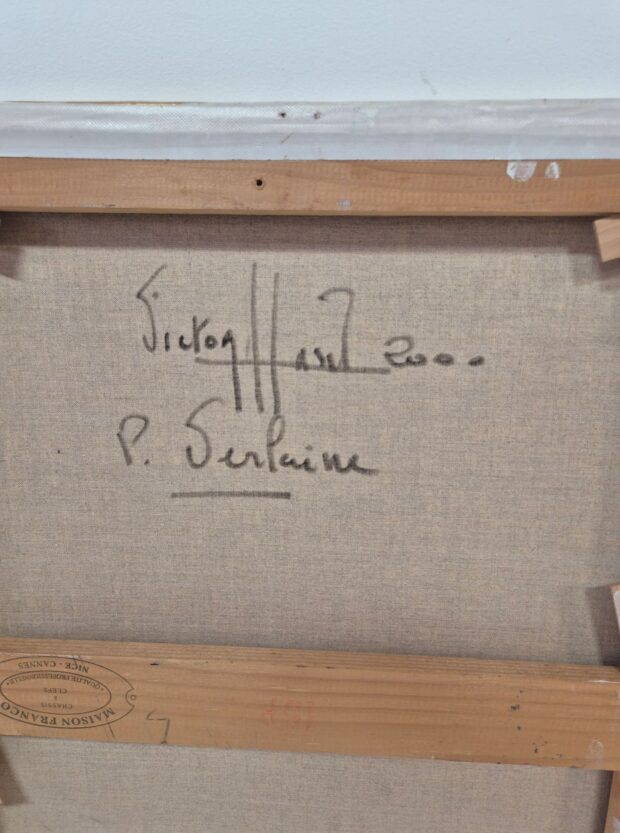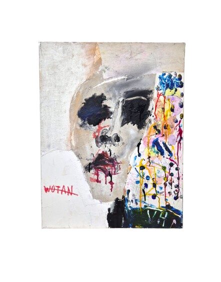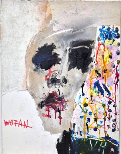 Technique mixte et collage sur toile, monogrammée en bas à droite. Signée titrée et datée au verso.